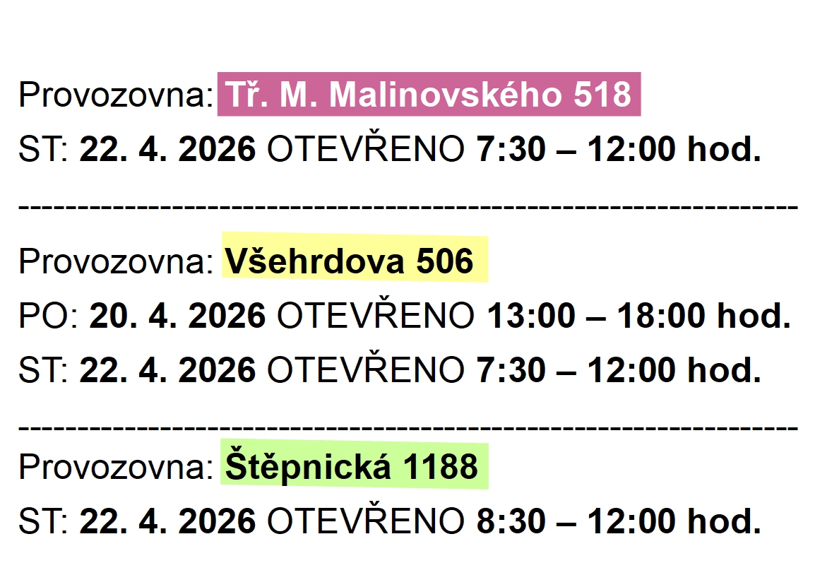 O Z N Á M E N Í – ZMĚNA PROVOZNÍ DOBY!