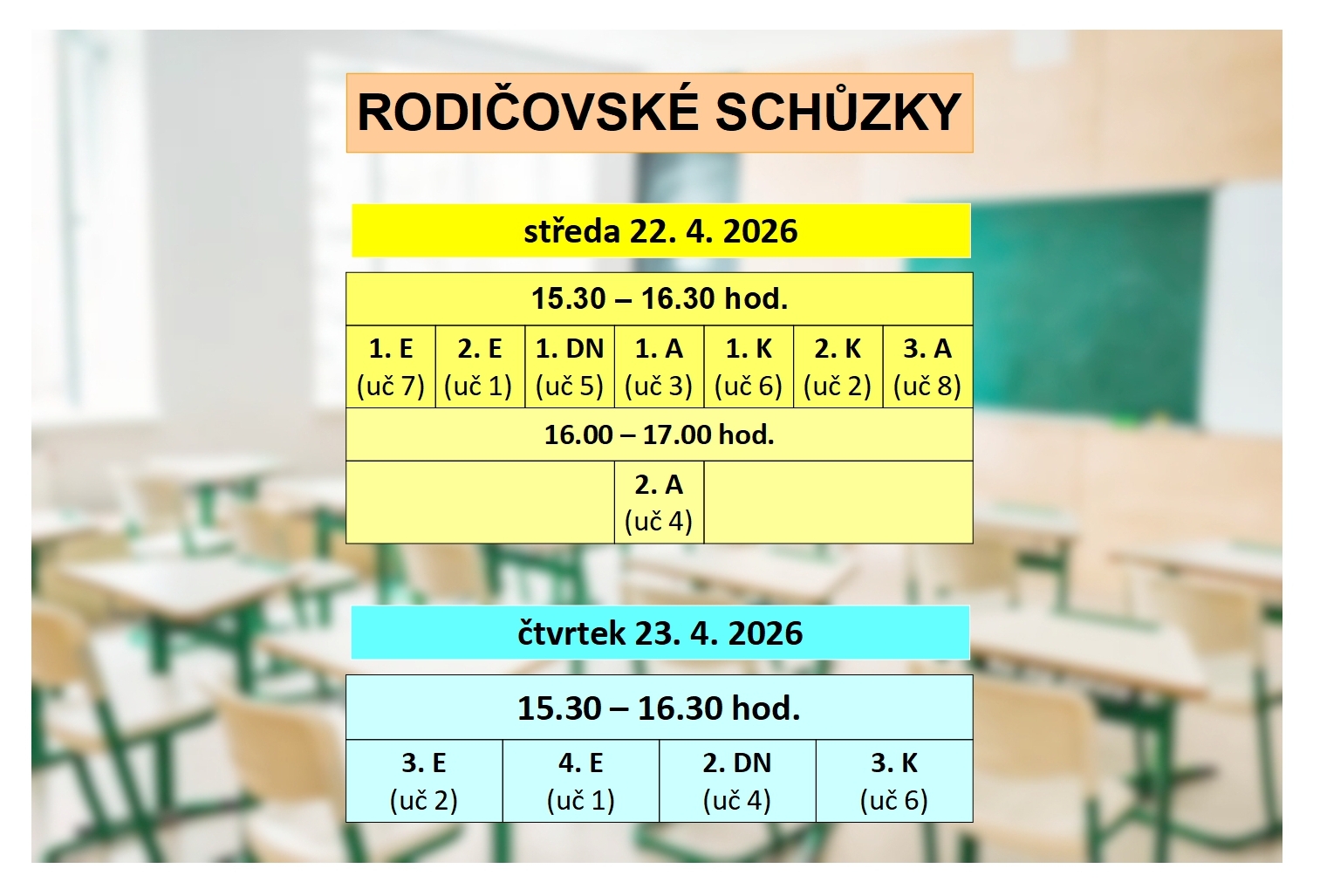 RODIČOVSKÉ SCHŮZKY / DUBEN 2026