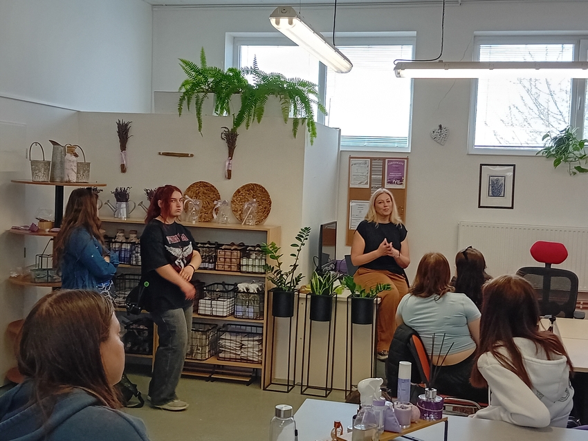Příjemná vůně levandule nás provázela už při vstupu a umocňovala celou pohodovou atmosféru. Paní Rucká nám s velkým nadšením představila celý proces výroby – od pěstování levandule, přes její sběr až po samotnou výrobu éterických olejů, balzámů, másel a dalších voňavých produktů. Každý výrobek tu vzniká ručně, s důrazem na kvalitu a přírodní složení.