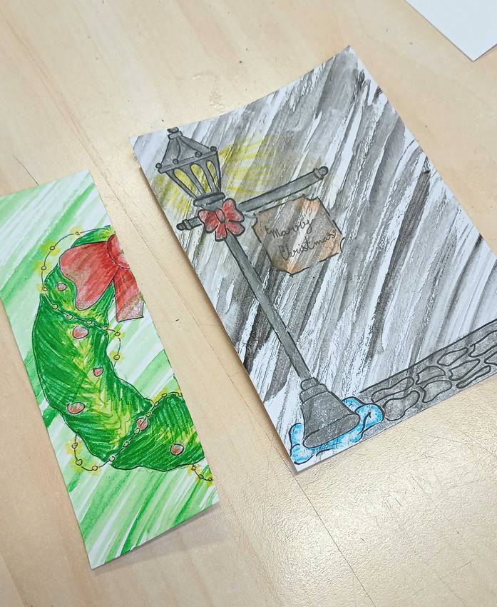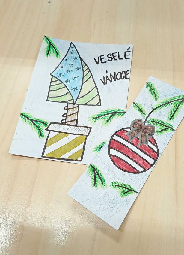 Úvod » Fotogalerie » Školní rok 2025/26 » Vánoční přání a záložka – aranžérská soutěž