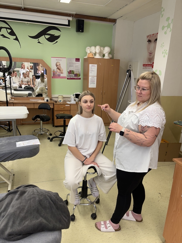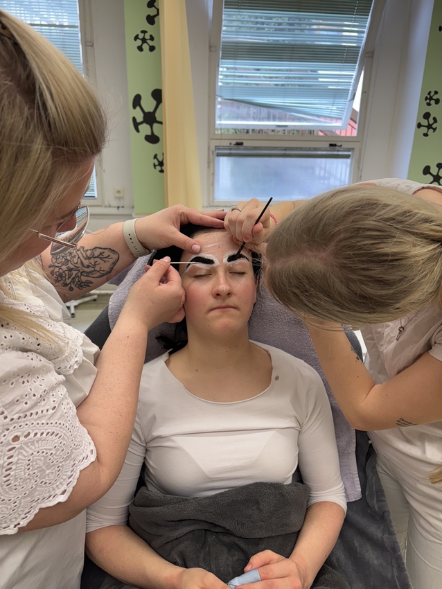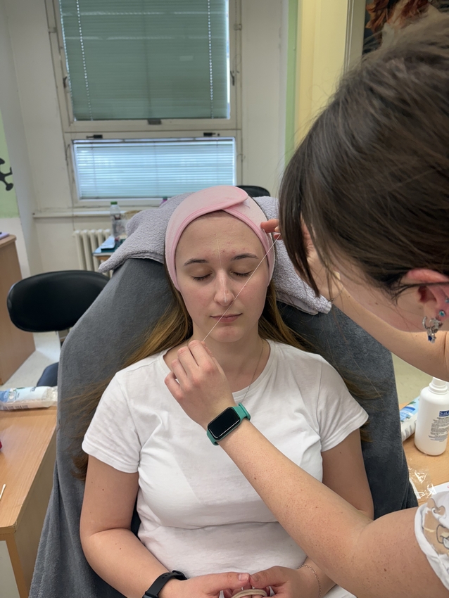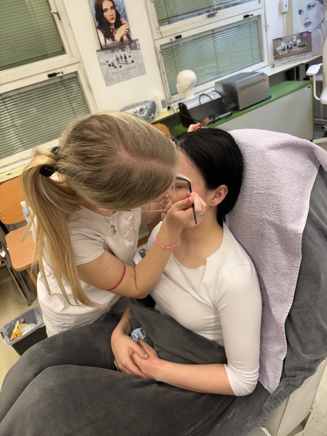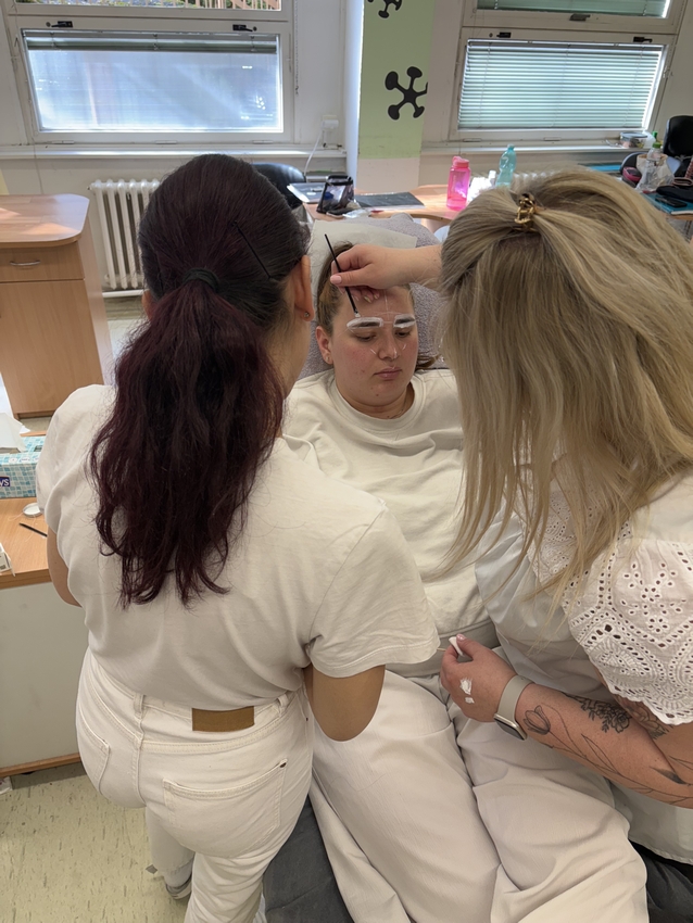 Na závěr si studentky samy vyzkoušely finální úpravu obočí pomocí vosku a dalších profesionálních metod. Celá akce byla nejen skvělou příležitostí k získání nových dovedností, ale také příjemným zpestřením výuky.