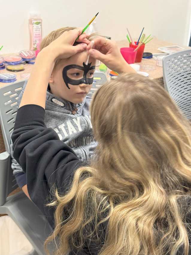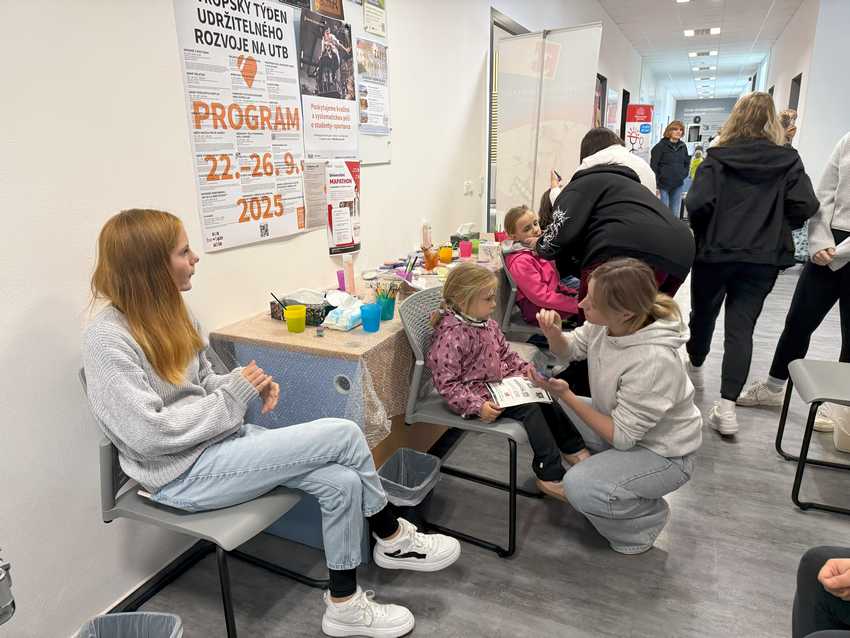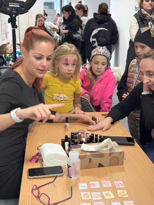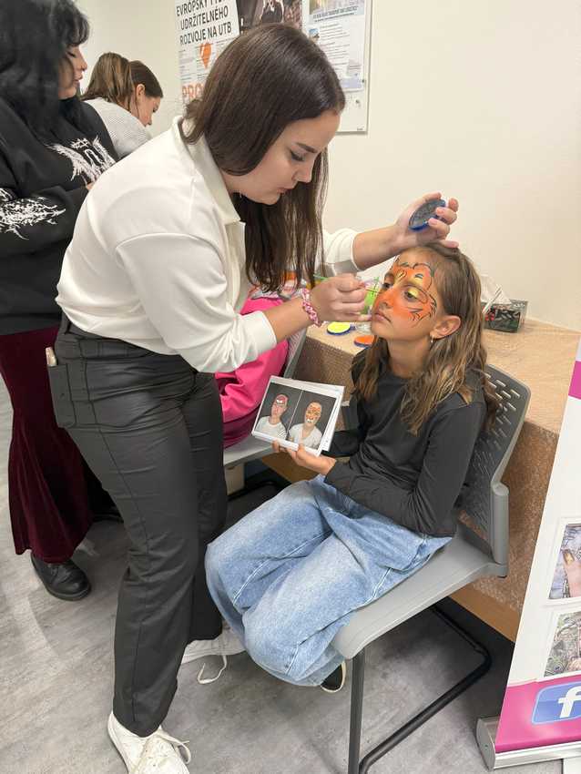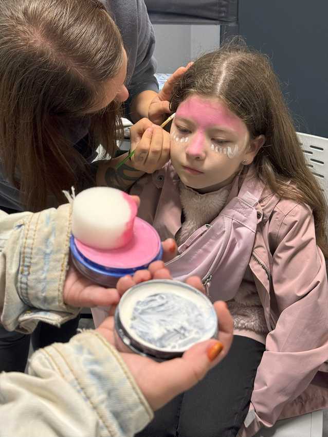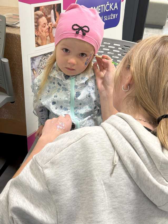 Studentky 4. ročníku kosmetiček malovaly dětem obličeje, lakovaly nehty a předvedly fantazijní líčení víly včetně kostýmu.