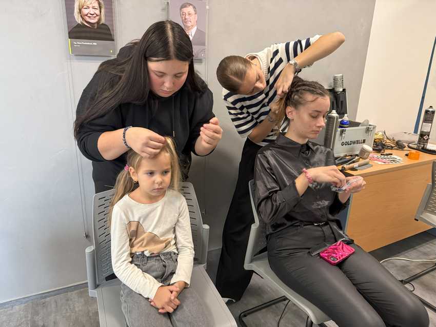 Studentky 3. ročníku kadeřnic vytvářely účesy, copánky a doplnily proměnu víly o fantazijní účes.