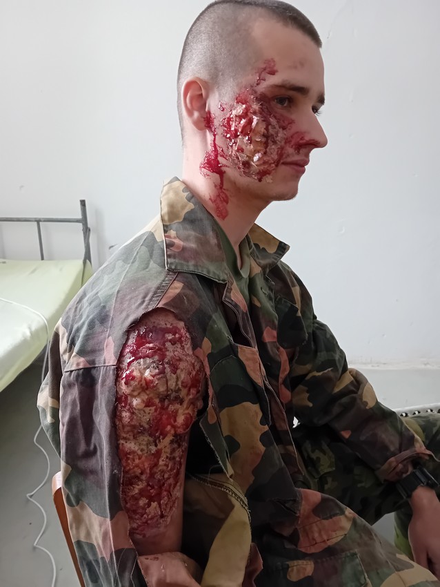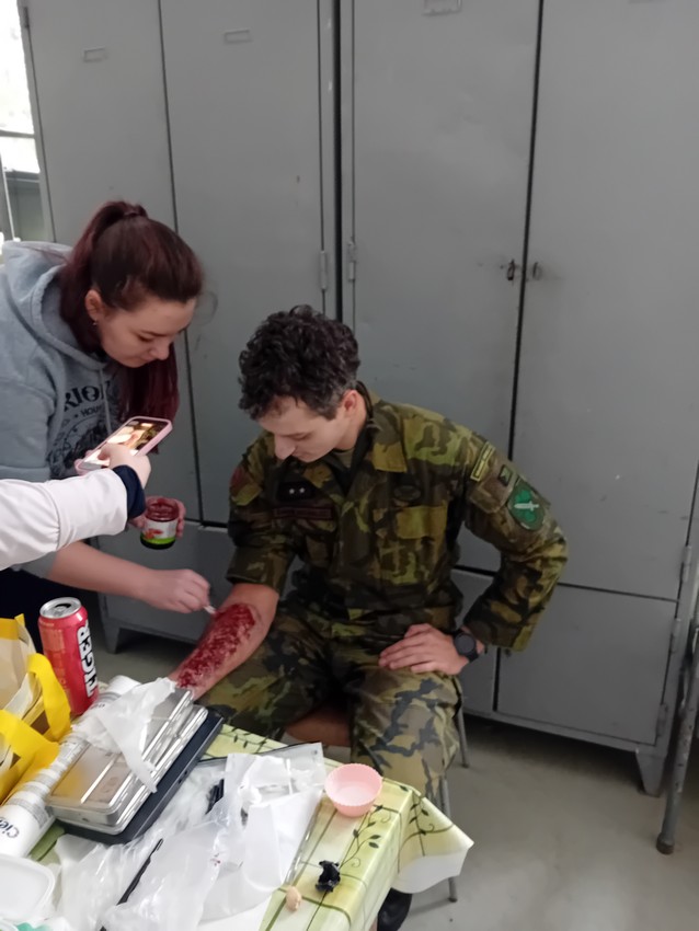 V rámci zdravotního vojenského cvičení Branných oddílů ČR jsme byly pozvány do Žítkovských kasáren, kde jsme s děvčaty pomáhaly připravit realistické simulace zranění pro účely výcviku. Naším úkolem bylo vytvořit různé typy poranění, se kterými se mohou účastníci cvičení setkat v reálných krizových situacích.